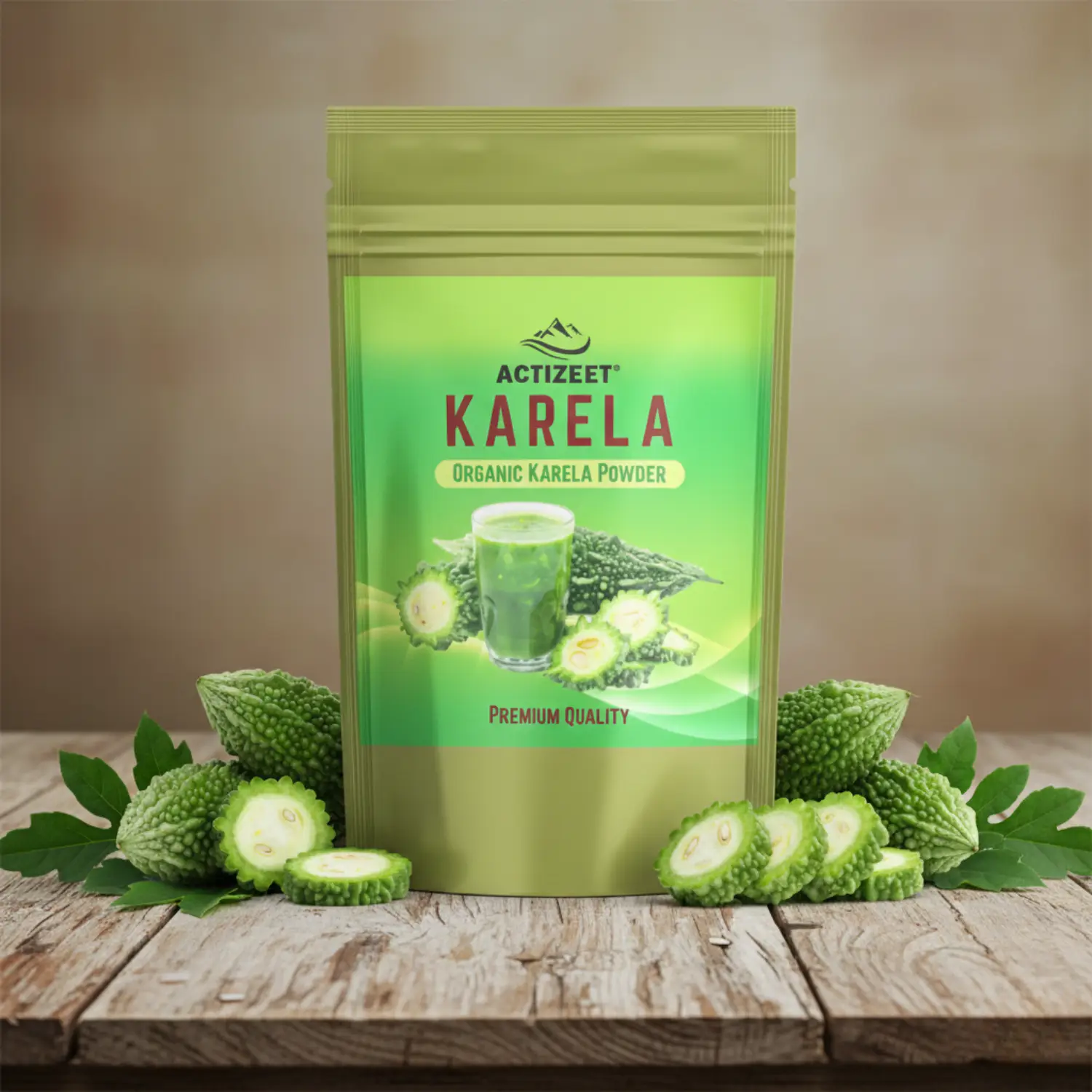 ACTIZEET Karela Powder is produced from carefully selected bitter gourds that are cleaned, sliced, dried, and finely ground into a smooth herbal powder. This process helps preserve the natural characteristics of the fruit.