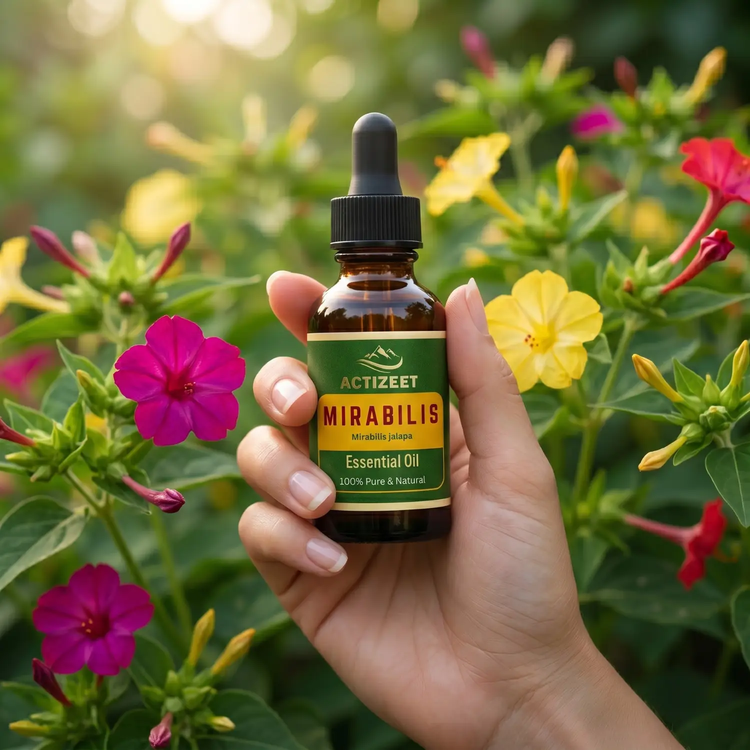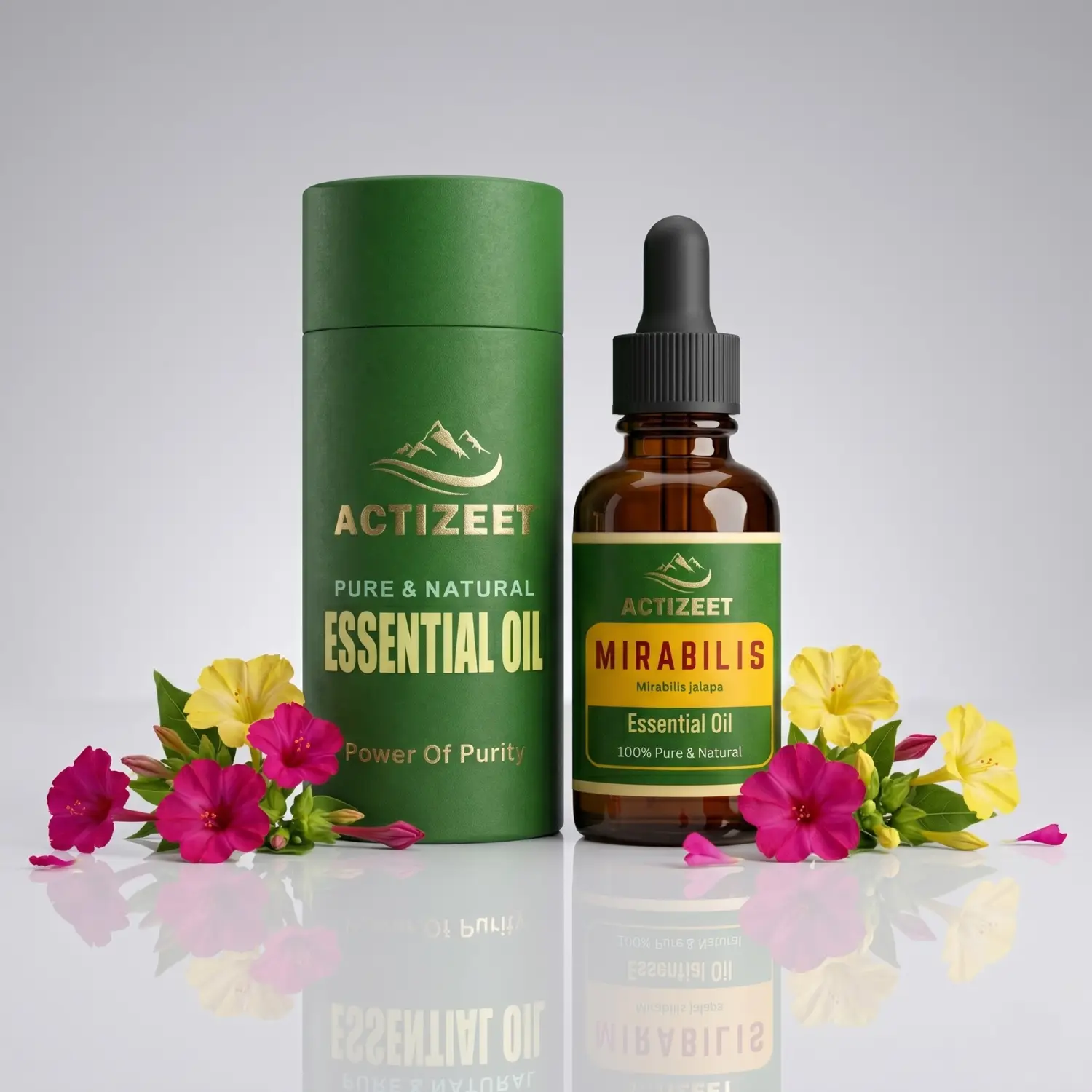 ACTIZEET® Mirabilis Essential Oil is a 100% pure, undiluted botanical extract meticulously crafted for the modern wellness enthusiast.